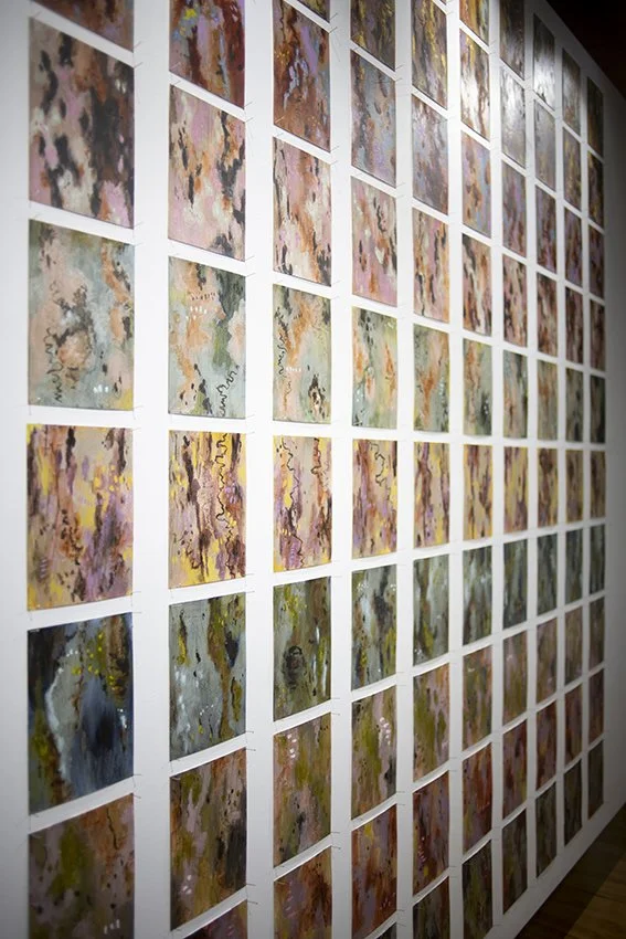 These works are inspired by our beautiful eucalyptus trees, each one based on an individual tree, focusing on their bark patterns. They represent us, the women in our histories, families and communities. They are as unique as we are, they are marked by their own colours, continually shedding their skin to reveal fresh patterns, shaped by the environment in which they grow, wearing their scars and wounds as proof of their strength and survival.